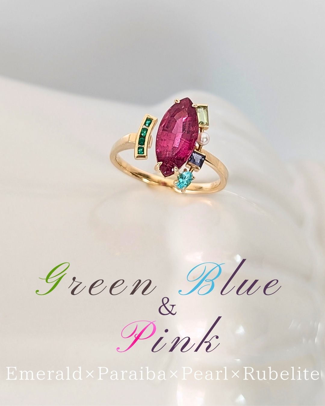 Hug リング Material:ルベライトトルマリン,エメラルド,パライバトルマリン,ペリドット,アイオライト,パール,K18YG