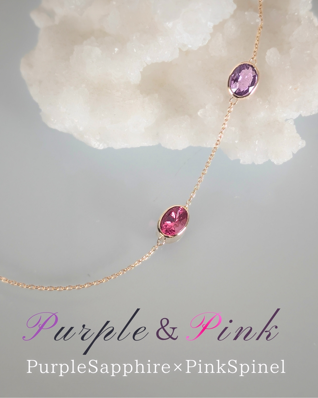 ステーション ブレスレット Material:パープルサファイア、ピンクスピネル、K18YG