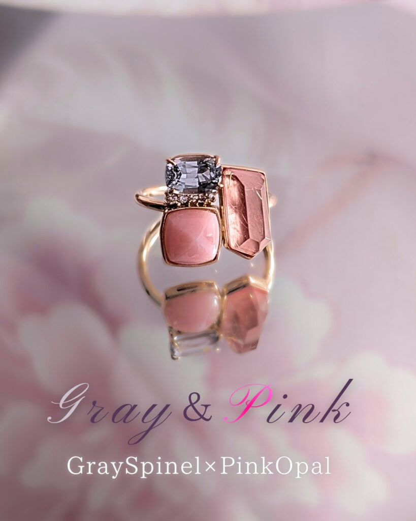 グレーは、成熟と深い知恵を象徴する色。ピンクの優しさと出会うことで、静かな強さと内面的な美しさが育まれていきます。グレースピネルとピンクオパールの組み合わせは、人生の流れを見つめ直しながら、より洗練された自分へと進めるエネルギーです。